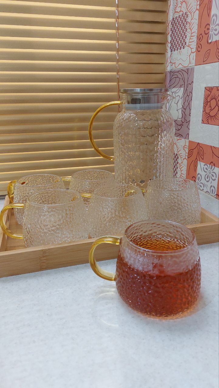 پارچ و لیوان پیرکس دسته طلایی وارداتی