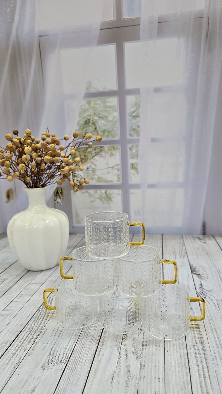 شات قهوه دسته طلایی گندمی