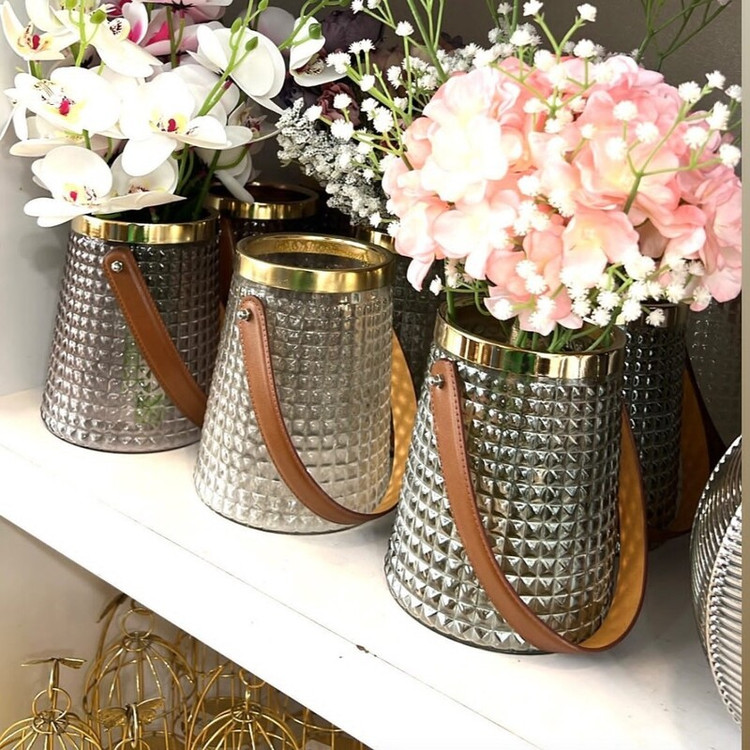 گلدان شیشه ای هیرا دسته چرمی