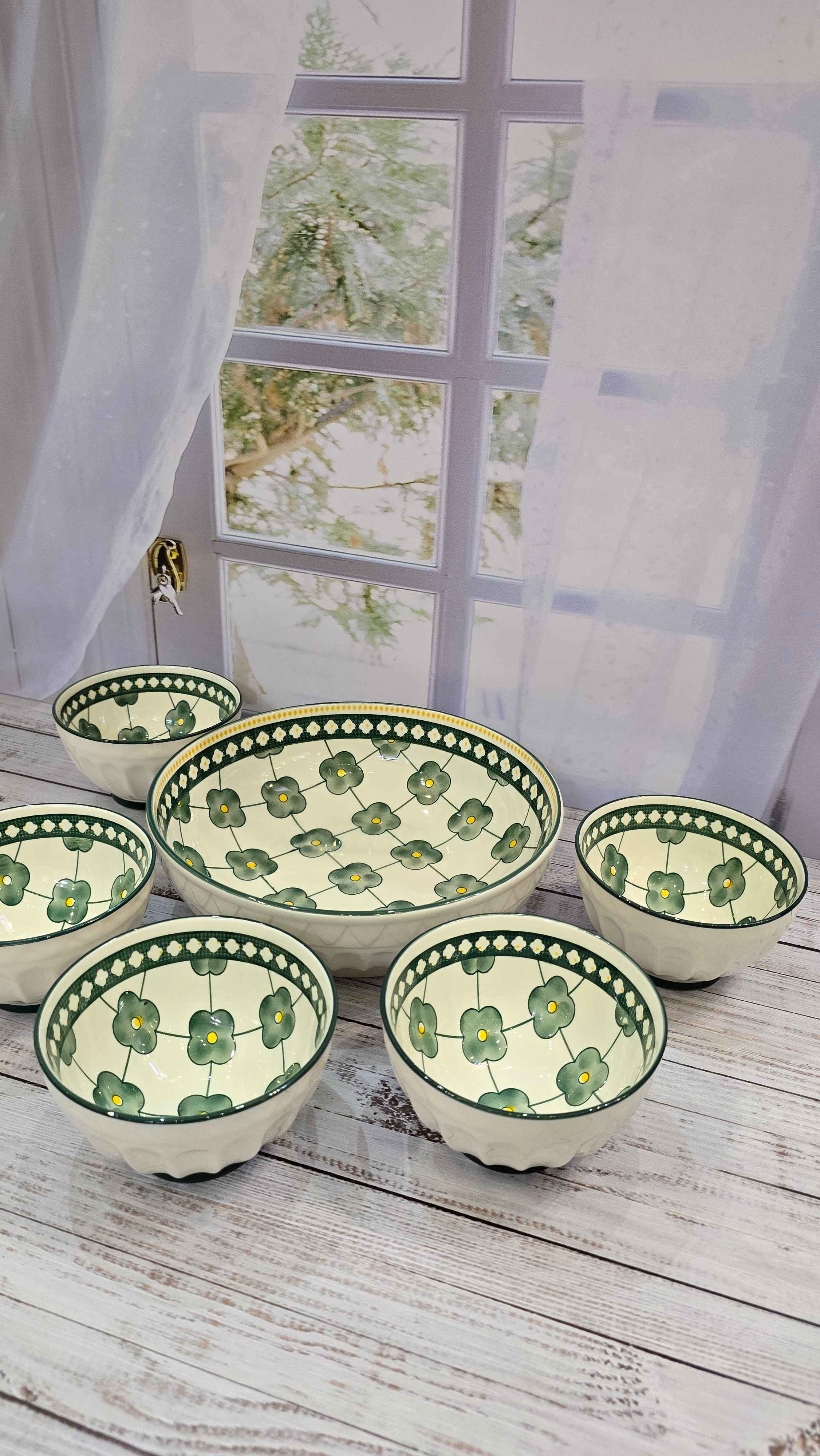 / کاسه بزرگ رنگ سبز / کاسه بزرگ رنگ آبی / پیاله کوچک رنگ سبز / پیاله کوچک رنگ آبی